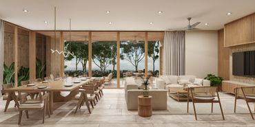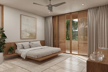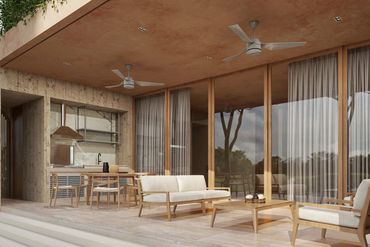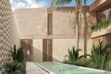 Los acabados reflejan la esencia del lugar: piedra natural, chukum y concreto aparente, materiales de la región que aportan textura, durabilidad y un carácter contemporáneo y elegante.